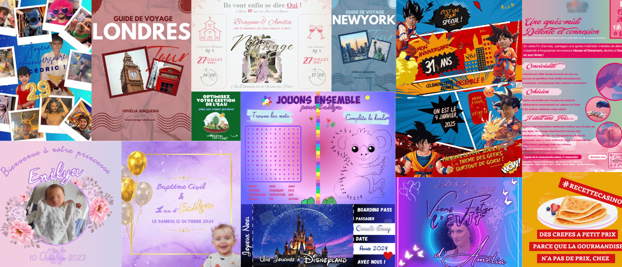 Dans un monde où chaque événement mérite d'être célébré de manière unique, il est primordial de disposer de matériel personnalisé qui reflète vos goûts et votre style. Grâce à mes services de création, je vous propose une gamme variée d'options telles que la réalisation de faire-part, d'invitations, d'affiches, de flyers, et de cartes d'anniversaire. Chacun de ces éléments est conçu sur mesure afin de répondre à vos besoins spécifiques et de marquer les esprits.